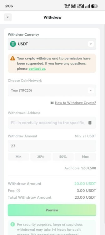 Withdraw and Tip Permission Suspended