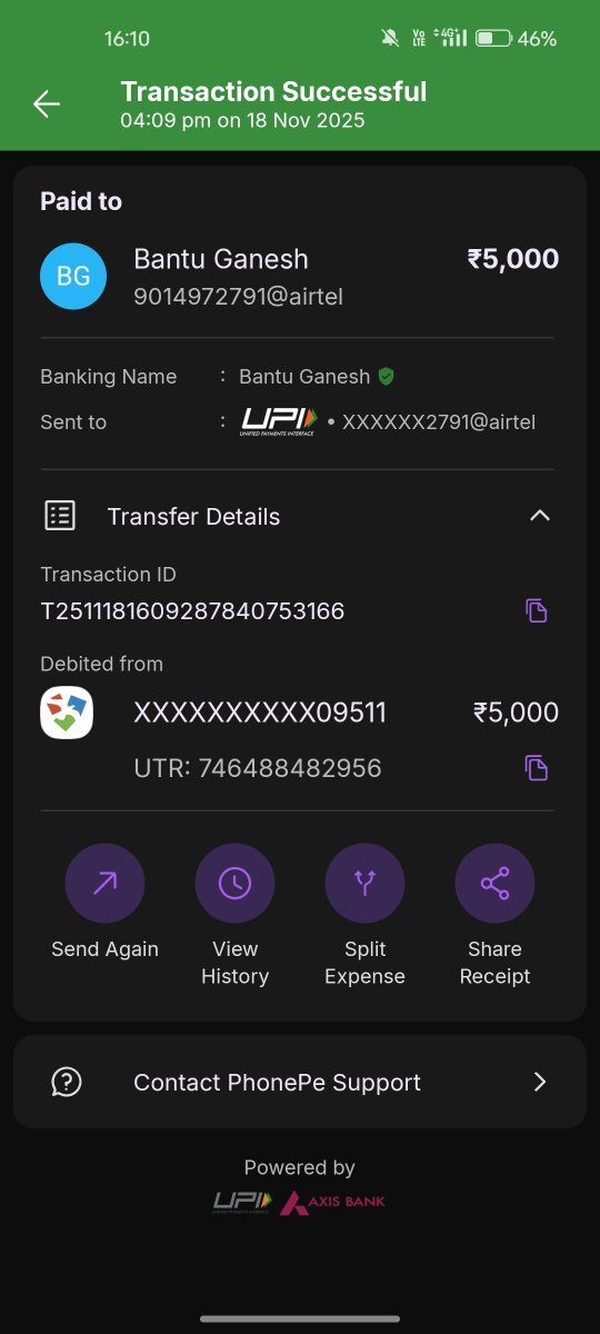 1. I paid 5000 INR successfully through UPI.